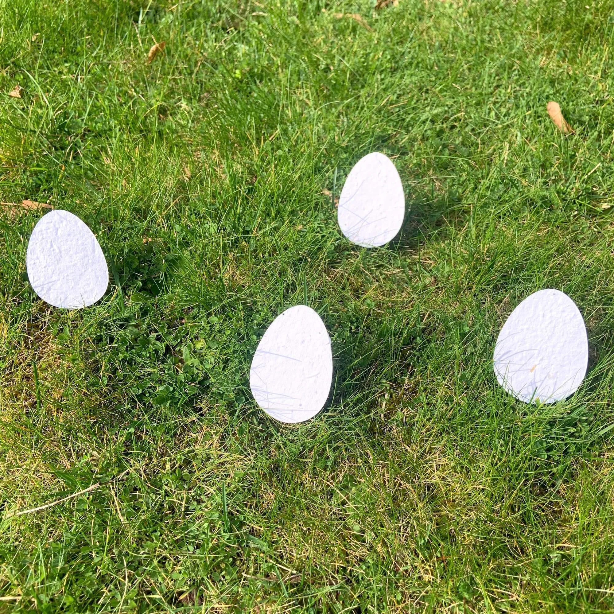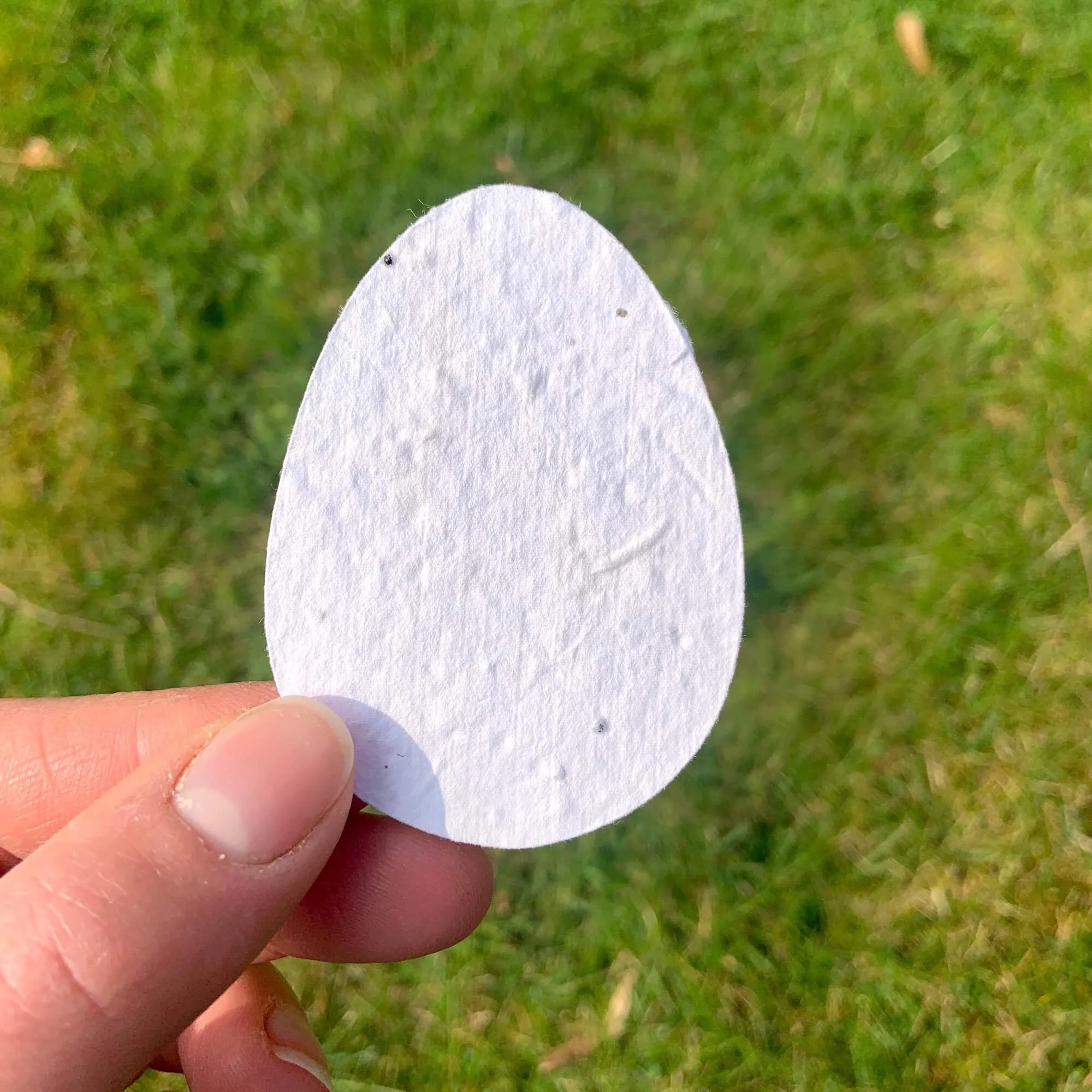 6 egg shapes included in each pack, with instructions sealed in a compostable glassine bag